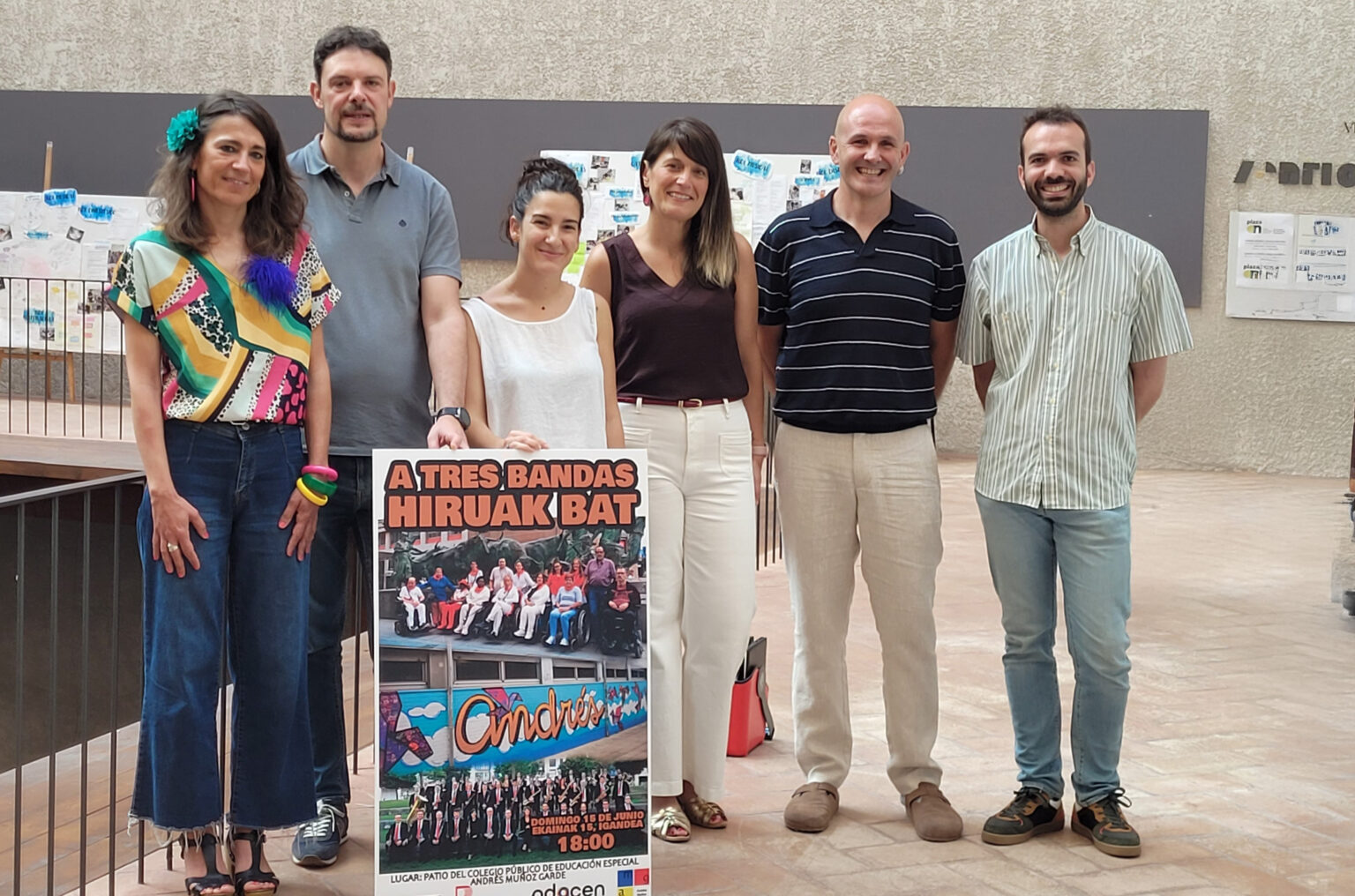 La Pamplonesa, ADACEN y el Colegio Andrés Muñoz Garde unieron fuerzas para celebrar el concierto “A Tres Bandas – Hiruak Bat”, un evento artístico y social que reunió música, inclusión y comunidad. El concierto, que tuvo lugar el 15 de junio en el patio del colegio, fue el resultado de varios meses de trabajo conjunto entre las tres entidades, con el apoyo del Ayuntamiento de Pamplona.